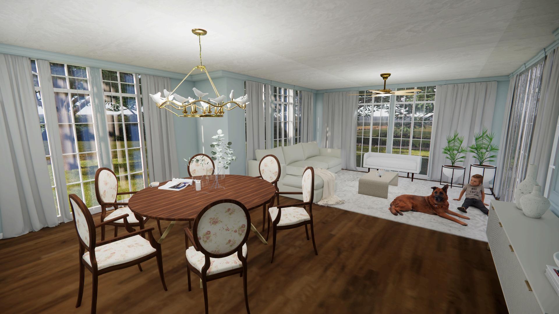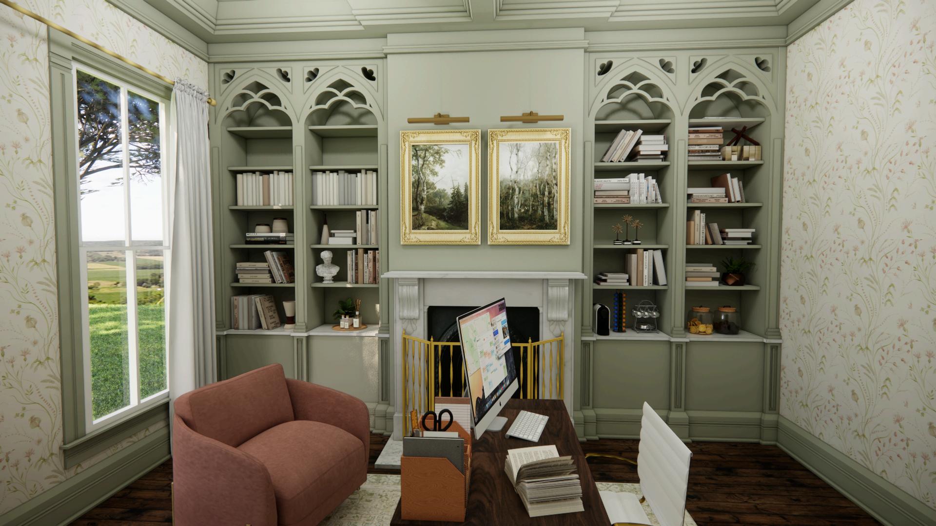 This design concept combines the whimsical charm of fairytales with the elegance of a Victorian home, featuring pastel and jewel tones, ornate trim, and antique furnishings for a vibrant yet tranquil atmosphere. Whimsical details like storybook wallpaper, fairy lights, and an enchanted garden create a magical, nostalgic space that invites exploration and comfort.