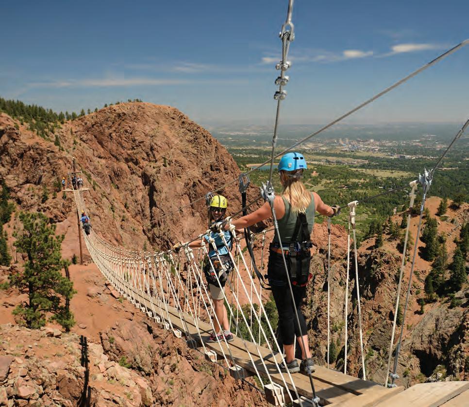 Located in Cheyenne Canyon above Seven Falls, The Broadmoor Soaring Adventure is a thrilling experience featuring zip lines ranging in length from 250 to 1,800 feet. You’ll be transported to “ground school” at the start of the adventure, where you’ll learn to safely traverse above the secluded Cheyenne Canyon for an unbelievable zip lining experience. The Fins Course, available on its own or combined with the Woods Course, includes two 200-foot suspension bridge crossings and a thrilling 180-foot controlled rappel at the end.