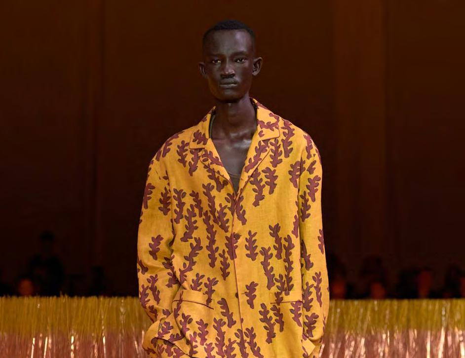 El Oasi Zegna casi se puede respirar desde aquí con simplemente ver las imágenes del desfile de Zegna para la temporada primavera-verano 2025 celebrado en Milán. La prueba: los fluidos conjuntos de camisa y pantalón en naranja quemado, sobre los que se han plasmado prints campestres. La clave para llevar este tipo de conjuntos tan desenfadados por la ciudad: combinarlos con mocasines y calcetines en tonalidades burdeos.