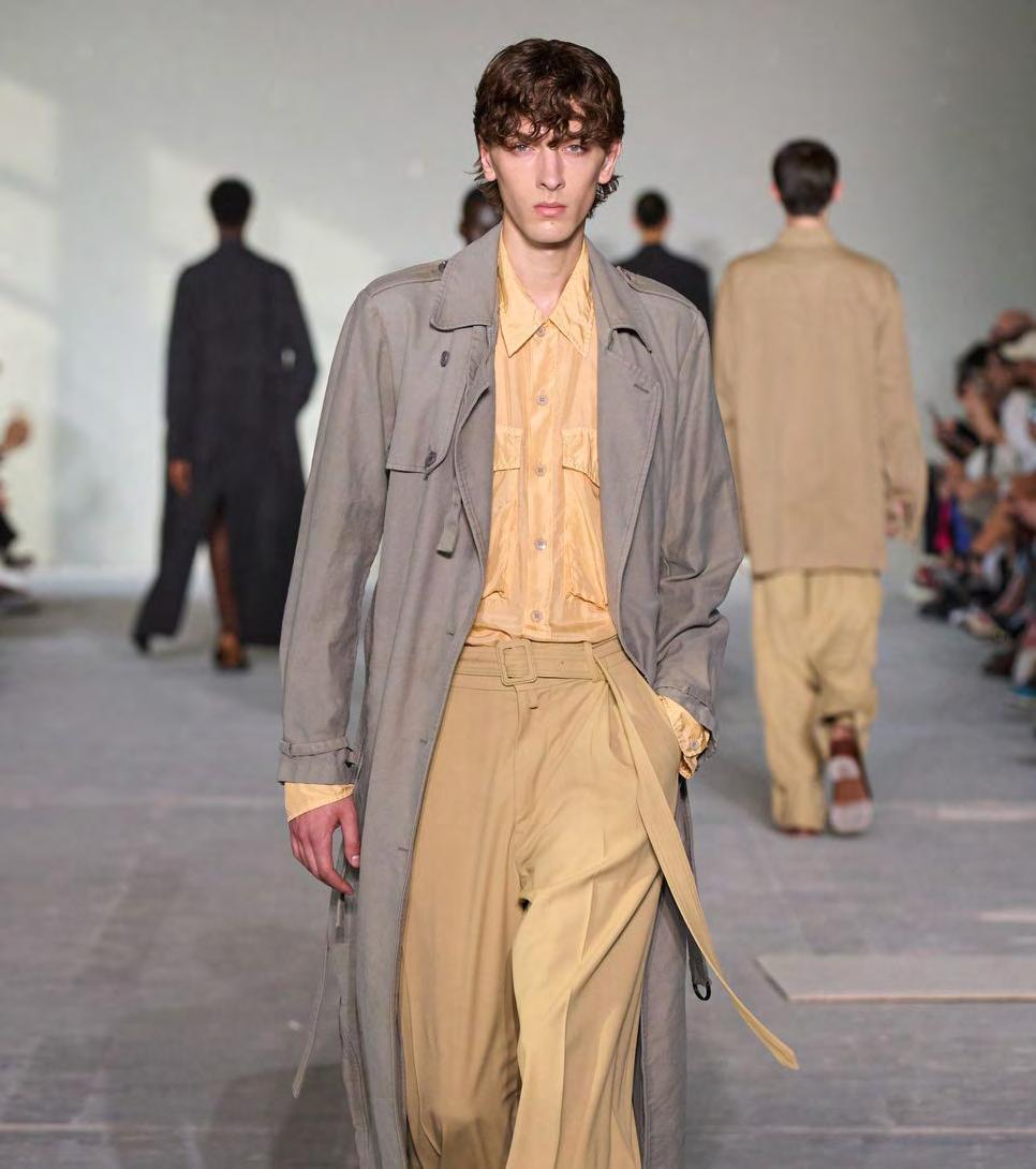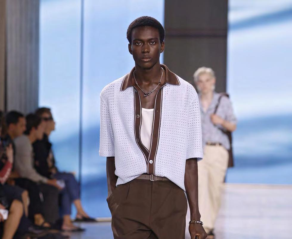 El Oasi Zegna casi se puede respirar desde aquí con simplemente ver las imágenes del desfile de Zegna para la temporada primavera-verano 2025 celebrado en Milán. La prueba: los fluidos conjuntos de camisa y pantalón en naranja quemado, sobre los que se han plasmado prints campestres. La clave para llevar este tipo de conjuntos tan desenfadados por la ciudad: combinarlos con mocasines y calcetines en tonalidades burdeos.