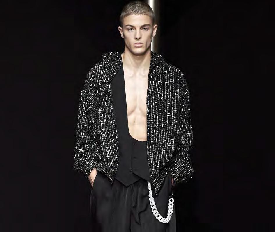 El ‘grandpa style’ ha calado fondo en el armario masculino esta temporada y creativos como Luca Magliano han sabido introducirlo con elegancia. La clásica rebeca de tejido grueso se transforma en una moderna cazadora bomber, que Magliano subía a su último desfile en Pitti Uomo. El diseñador ha sido invitado a la feria más prestigiosa de la moda masculina para presentar su colección otoño-invierno 2024 y esta ha sido una de sus propuestas.