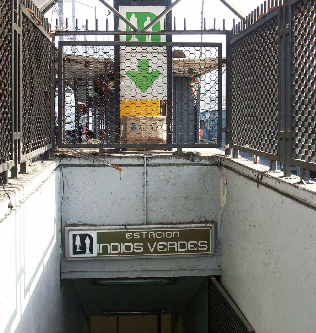 La estación Indios Verdes se localiza al norte de la ciudad; su nombre e iconografía refieren a dos enormes esculturas de bronce que representan a dos Huey
