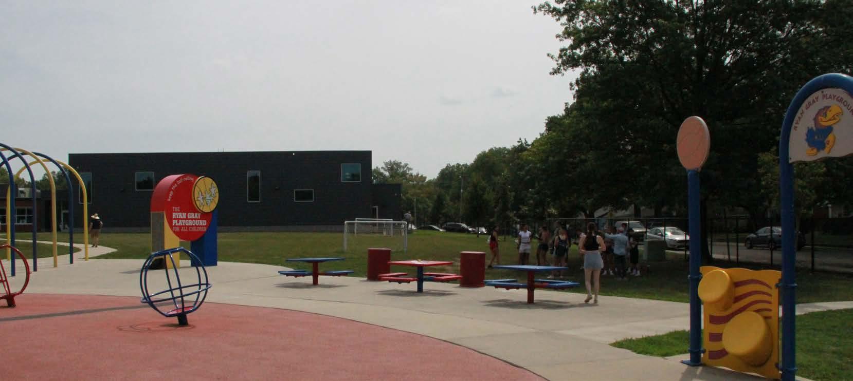 The playground is dedicated to the late Ryan Gray, a dedicated Kansas basketball fan, and considered a “good luck charm” to the team.We visited and documented our targeted shade area; the picnic tables. To kick off the project, we were introduced to our site at Hillcrest Elementary. Their playground recently underwent renovations, meaning they lost most tree cover around the area, leaving recess exposed to the elements.