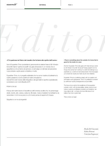 «There is something about the outside of a horse that is good for the inside of a man» We from Equestrian Time fully agree with these famous words by Sir Winston Churchill. We are all “horsey people” and it is the joy that comes from working in a world that belongs to us, captivates us, a world we have always loved, that encourages us to travel new routes and make way for new initiatives. Equestrian Time is a publishing project with our passion and enthusiasm as its godparents. The E.T.’s philosophy is shared by well-known sports photographers and journalists. The focus of our work is the excellence of the equestrian universe, which, with its personalities, stories, events, its art, culture, customs and lifestyle, its fashion and traditions, has many tales to tell... to those who know little about it but believe they know a great deal. This is where we begin.