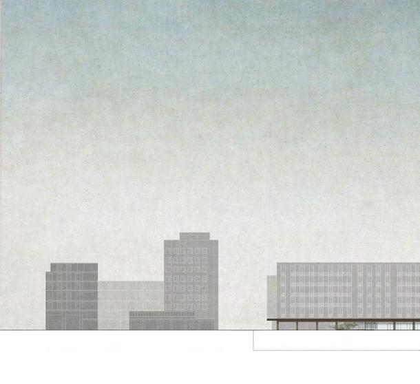 brightness of the Seine estuary has been the determining factor for the birth of Impressionism, and the port, water and cliffs inspired, in addition to Monet, Dufy, head of school of the Fauves, Braque, founder of Cubism and Dubuffet, father of brut art. The project for the museum of pictorial representation in Le Havre stems from the desire (necessity) to investigate the theme of stratification and typological, architectural and urban overlap that has characterized the contemporary city. The museum is structured on two overlapped levels that contribute to the compositional unity conferred on the architecture by the superimposition of two typologies: that of the city-level, the ground floor, typological interpretation of the work done by Perret on the body of Le Havre in 1944 and that of the underground wall that develops the exhibition space on the trace of the ancient city. A frame reflects the shape and measure of the contemporary city but, at the same time, protects and reveals a trace, evocation of the historical city. At the same time, Perret faced the issues related to the reconstruction by looking at the forms and meanings of the elements of nature and those determined by anthropogenic transformations, drawing a city in which the identity of the place itself seems to be recognizable. The language and grid of the city of Perret then continues in the structure of the ground floor, creating compositional unity with the context; the basement originates from the path of the ancient Renaissance walls, parallel to the course of the Seine. The meeting point between the two eras is the cut on the ground floor, the trace of the past that emerges and becomes light in the museum gallery on the basement. A water pool in the center of the exhibition hall, located at sea level, creates a forced path for visitors, illuminating the architectural space with a changing light like the sky of the city.