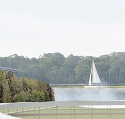 The pier structure serves as an educational space where visitors can observe the artificial mangroves roots underwater, working to foster community engagement and bring awareness.