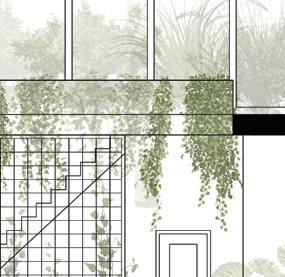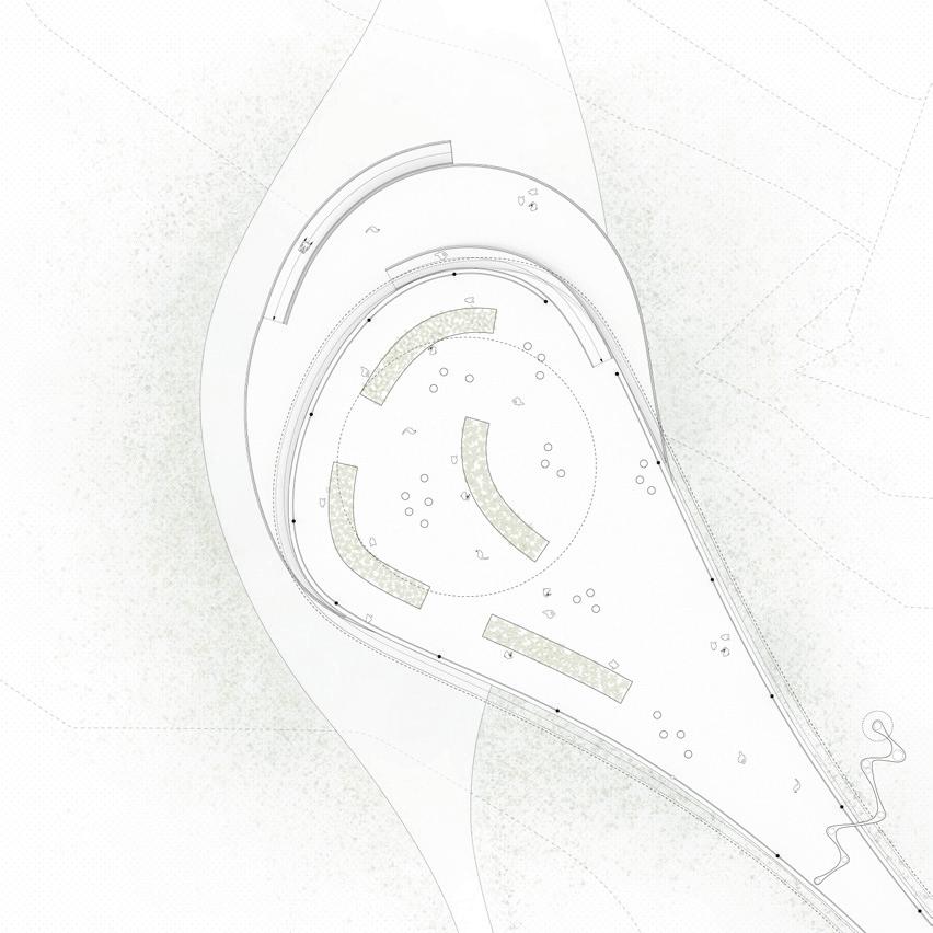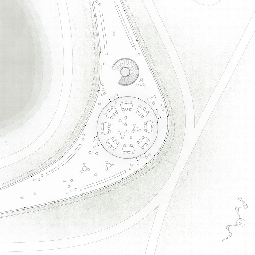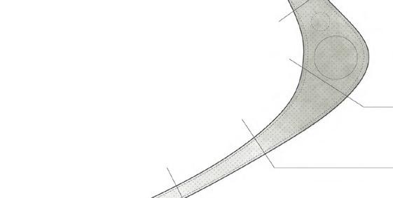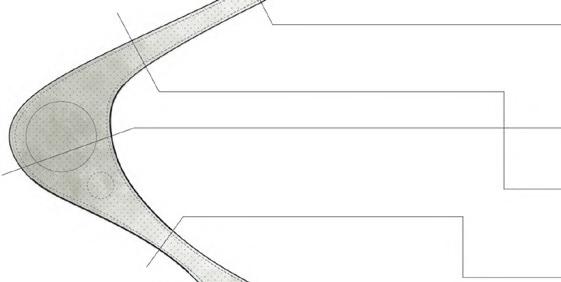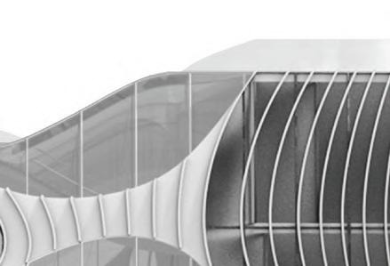 ROOF: The roof acts as a rain harvesting system through its sloping surface at each bend of the curve where the programs are located. Rainwater is collected with gutters and directed to an underground tank which is then used as irrigation for greenhouse plants or non-potable purposes. Additionally, circular openings in the roof signify a connection to the sky during social gatherings in the open public spaces.