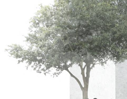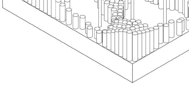 COLUMNS: While providing structural support for the elevated building, the columns are also used as a unique architectural element to enhance the spatial experience of the building. The spacing between the columns gradually increase and decrease at specific areas to direct the view outwards to the landscape or inwards to the programmatic spaces for education purposes.