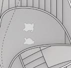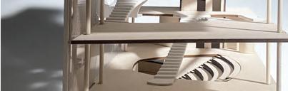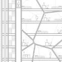 CIRCULATION: The primary staircases and ramps at the center of the connecting structure resemble a "sticky" texture that is apparent in both plan and section. Each attached to two floors, the staircases allow for easy circulation on all levels of the building while the ramps provide universal accessibility on every level.