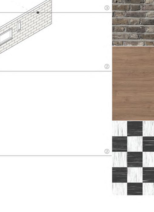 VIEW OF EXTERIOR BRICK WALLS VIEW OF INTERIOR MATERIALITY