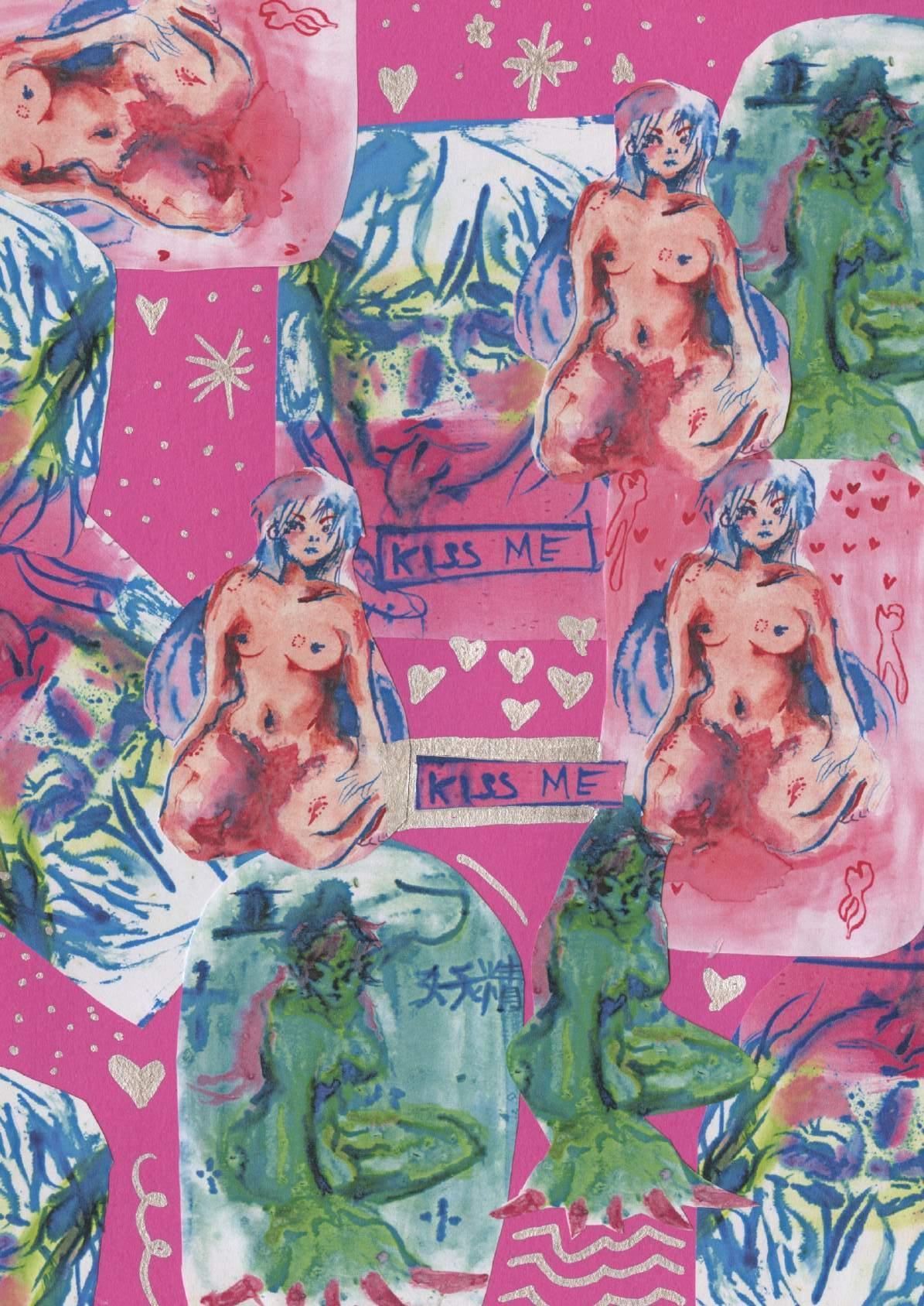 These watercolour works respond to the Cyborg Manifesto by Donna Haraway, an essay that “is an effort to build an ironic political myth faithful to feminism, socialism, and materialism”. It examines the place of feminismin a posthumanist world and calls for a reconstruction of how we interpret gender, diverting from traditional notions of naturalism and