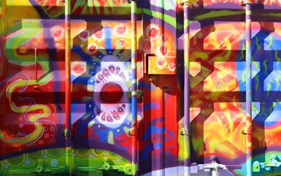 The mural was painted over the exterior of a shipping container as a part of the youth workshop hosted by Central Crafts. The purposebuilt shipping container is a lockable self-contained gallery/workshop space that was funded through a Community Benefits Grant.