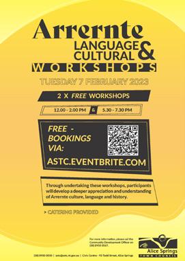 GRANTS INFORMATION SESSION 5.30-6.30pm | Monday 6 February @ Andy McNeill Room Council’s Civic Centre 93 Todd Street, Alice Springs. Your project or organisation could receive up to $5,000 in funding for initiatives that add value to the community. Application forms and further information: www.alicesprings.nt.gov.au (08) 8950 0500 < scan the code to find out more Closes Monday 27 February 2023 at 5pm