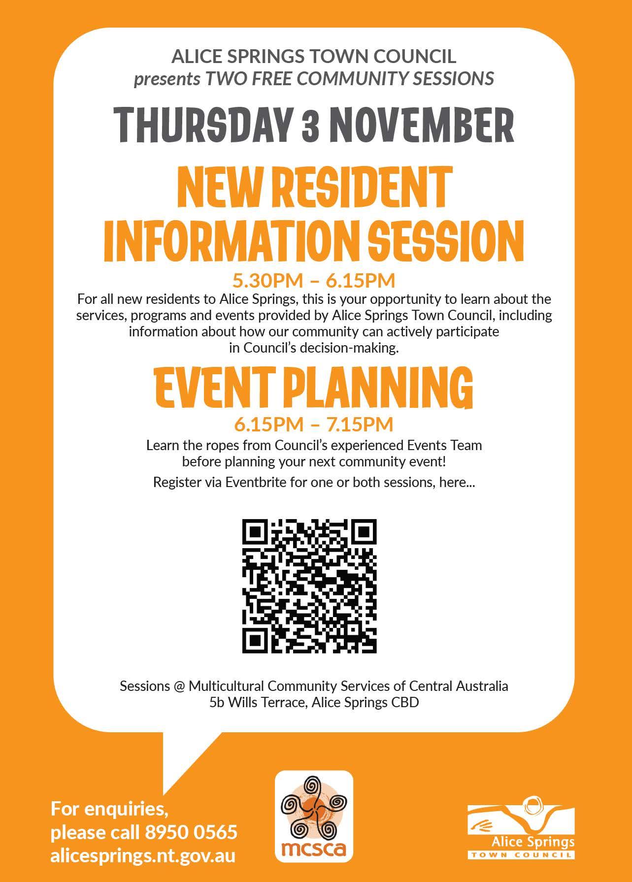 you like to learn more about holding events? Multicultural Community Services of Central Australia (MCSCA) and Alice Springs Town Council are delivering a FREE events basics workshop for all community members. This session will include a take-home event guide for running events in Alice Springs. WHEN? 6.15-7pm, Thursday 3 November. Sessions are FREE but registration is required. Please register online for one or both events prior to event, or call 8950 0565 to enquire.