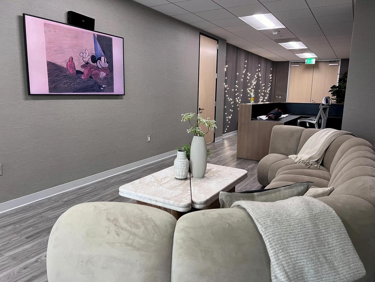 The reception area of Structure Law, a prominent Los Angeles law firm, was transformed from a minimal, unremarkable space into a welcoming and chic waiting area. The redesign introduces character and sophistication, creating an environment that captivates visitors while maintaining a professional atmosphere.