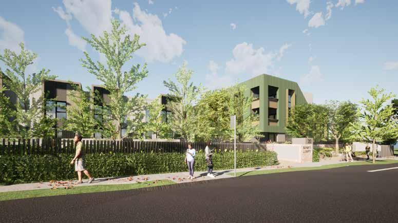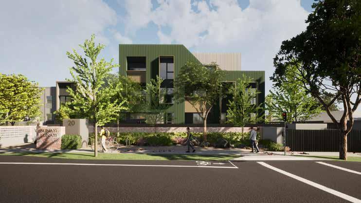The proposal is located in the heart of Bendigo city and aims to provide temporary transitional housing for women. It comprises of 25 apartments and 10 townhouses distributed across 3 buildings.