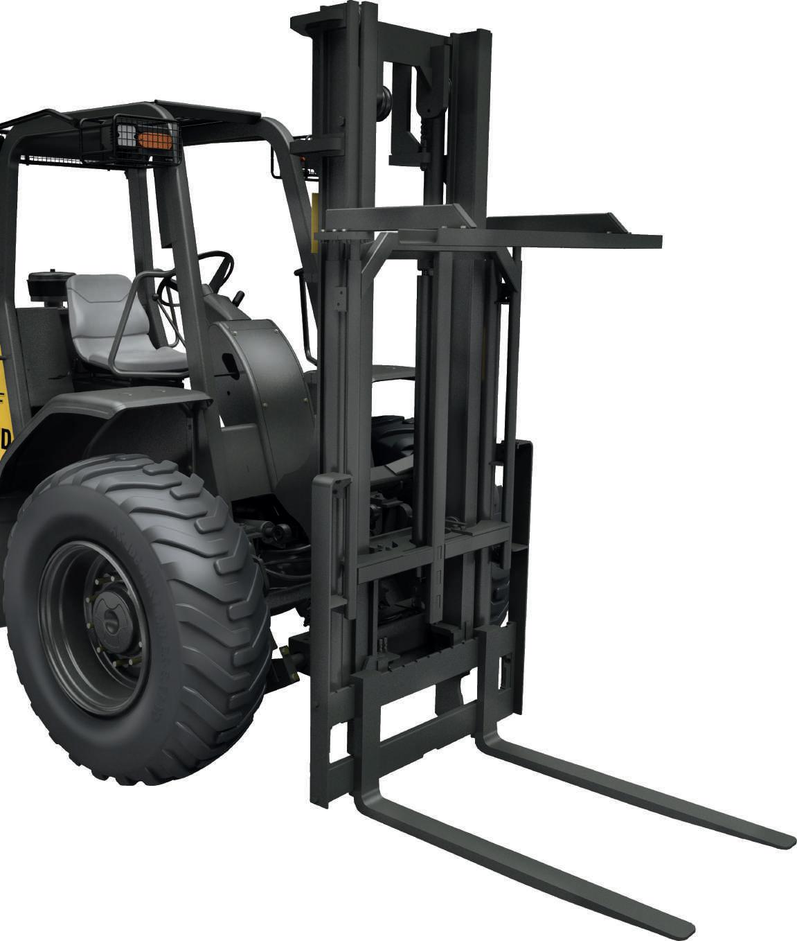 Teniendo en cuenta el terreno variable en las operaciones especiales, New Holland ha in cluido 4WD, una transmisión de inversor de potencia 4x4 y bloqueo de diferencial están dar en todas las carretillas elevadoras F50C. Estas características, además de su distancia al suelo de 10 pulgadas, contrapeso de alto espacio libre, paquete de iluminación LED y protectores de cultivo, ayudan a los operado res a navegar por terrenos variables y prote ger cultivos valiosos con facilidad.