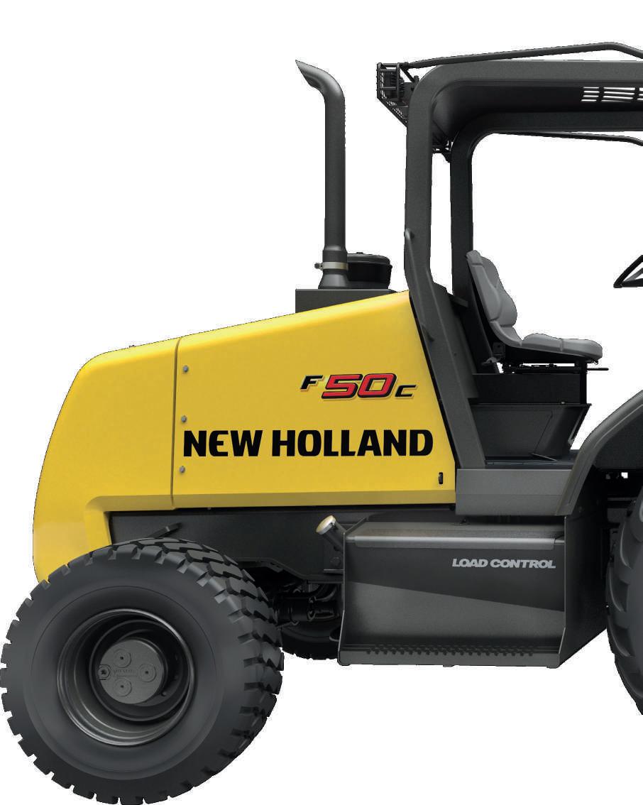 New Holland anunció la introducción de la carretilla elevadora todoterreno F50C, lo que marca la incorporación de un producto completamente nuevo a su línea de equipos de construcción ligeros. El F50C ha sido diseñado para su uso en operaciones de cultivos especiales, como viñedos, huertos y otras aplicaciones de frutas y verduras, y cuenta con especificaciones únicas, que incluyen un sistema de control de carga automático y una abrazadera de contenedor integrada.