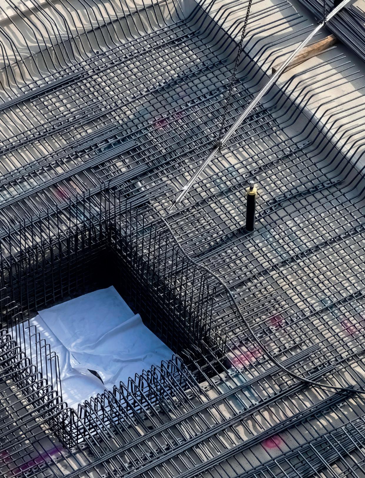 Si no se usa autocompactante, lo importante a tener en cuenta es la consolidación, que es el proceso de vibrado para garantizar que esa mezcla quede uniforme, aloje y recubra bien, con buen revestimiento de maya de refuerzo y que las instalaciones queden embutidas.