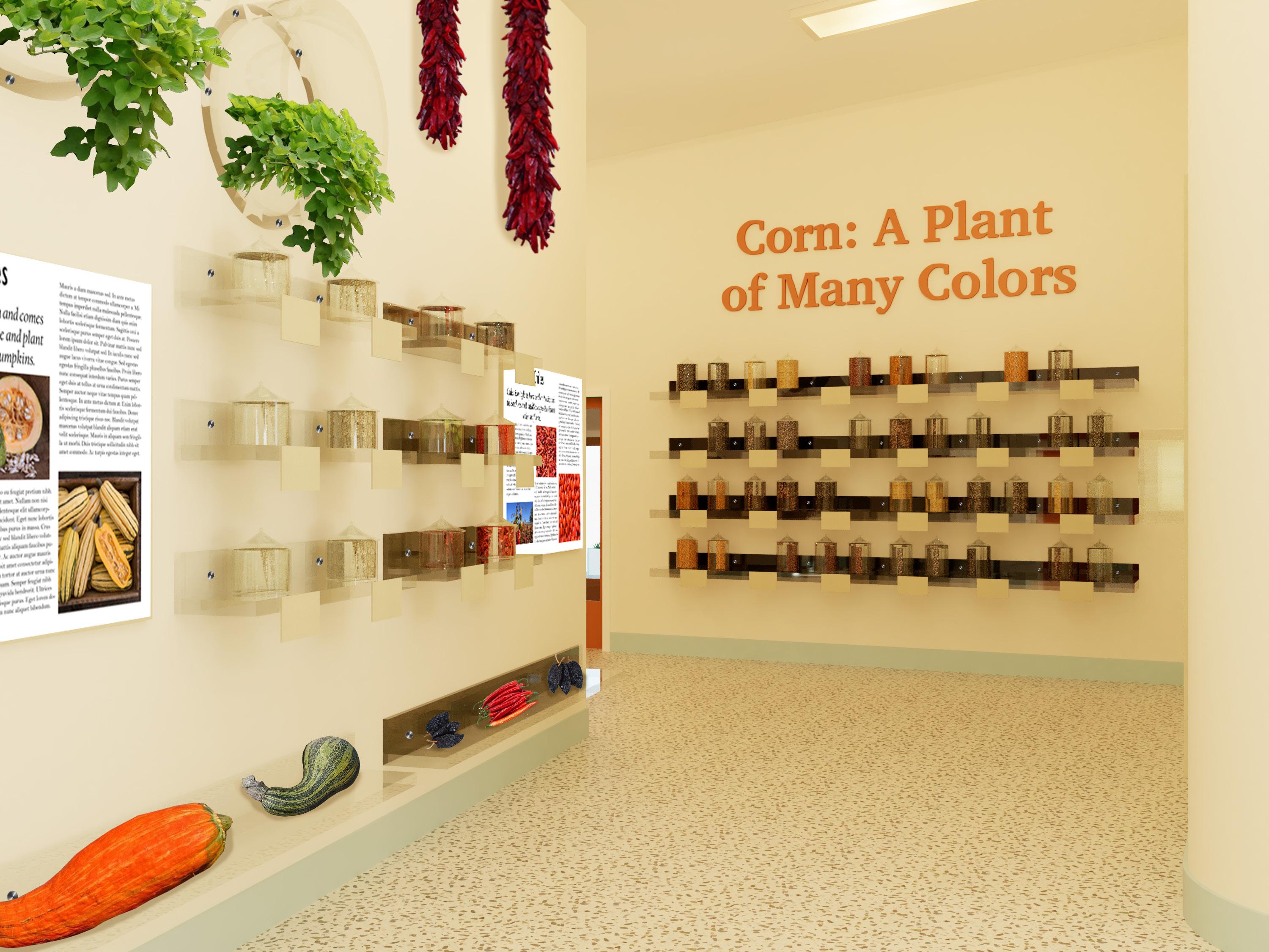 Three main areas of the building reinforce the mission of The Indigenous Kitchen. The restuarant allows local Indigenous cooks to showcase the possibilities of cooking with Indigenous ingredients. The gallery provides the public with eye-catching displays of important edible Indigenous plants and ancestral foodways. The teaching kitchen provides the Indigenous community of Albuquerque with the appropriate environment for learning traditional cooking and foodways, free of charge. With its large show window, the exterior of the teaching kitchen also encourages guests to watch and reflect on the impact that lear ning how to work with Indigenous ingredients has on their community.