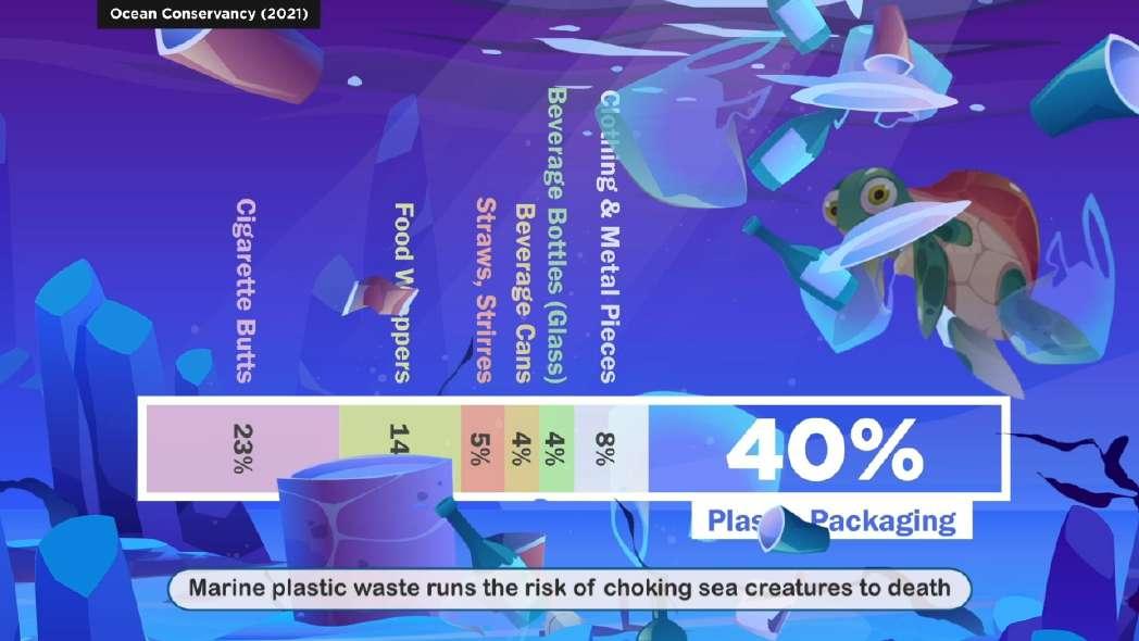 Description: this project depicts the marine plastic debris issue in Southeast Asia. Our team transformed various datasets and scientific findings into dynamic charts and compelling illustration to uncover the fact that Southeast Asia is the largest contributor of plastic debris in the world's ocean. We also highlighted the EPR (Extended producer responsibility) scheme and visualized it in an understandable way as the solution for this issue.