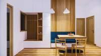 1. Wood flooring and ceiling enhance the interior with a warm and natural feel, creating a grounded and nature-connected ambiance.