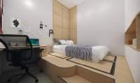 This studio apartment is occupied by a single male in his late 20's - early 30's. He works a 9-5 office job and needs a home that would feel like a relaxing and resting place after a busy day.