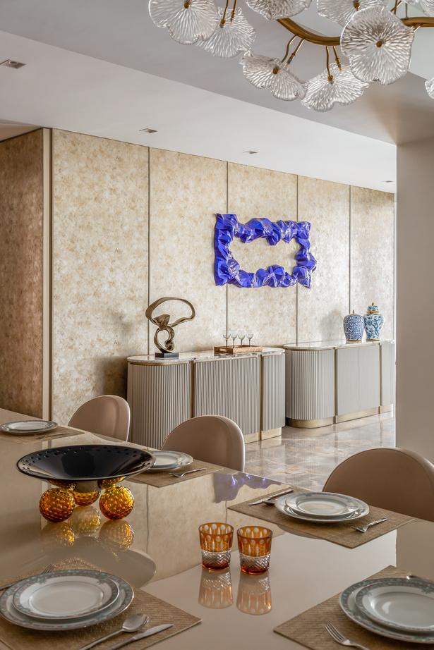 An assortment of distinctive art and vivid sculptures bring the corners to life The amalgamation of luxury and warmth brought the entire space together along with the unique selections of materials and a variety of limited edition pieces, making this home a class apart