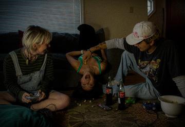 friends, some with kids sitting at their desks, watching television or putting on their makeup, and some not accompanied at all. Just empty rooms with pictures from home on the walls and blue, purple, or green neon lights shining from the ceiling.
