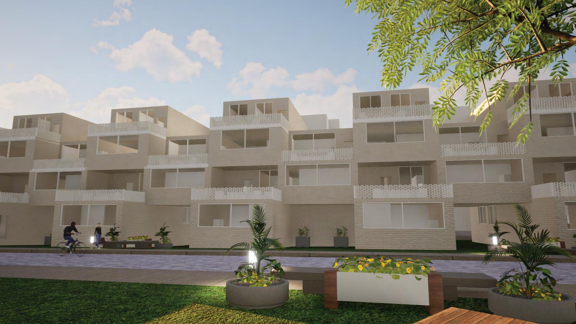 Tatreez is intricate in design, starting with small patterns that make up an artistic whole. The patterns originate from the heritage of Palestinian communities and are incorporated in different ways into this project. This Tatreez inspiration continues throughout the site, from the form of the apartments to the pedestrian street design.
