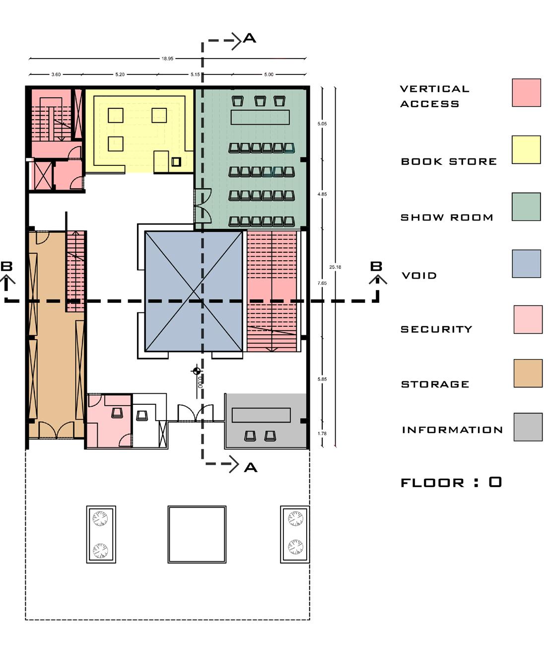 1-Plot size is 3500 m2 and is located in west north of 2- The main axis conection. 3- The site is retreated for attract visitors. 4- Pre- entrance in corner. 5 Public area. 6 Three zones- Educational, Main hall and Exhibition.