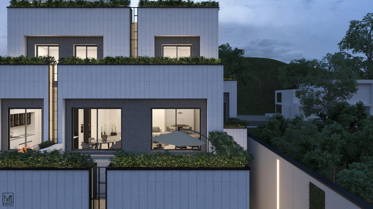 2 Divide the space into two parts while maintaining the vegetation available on the site.