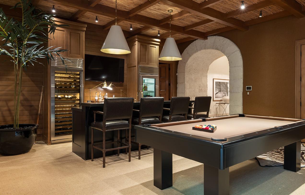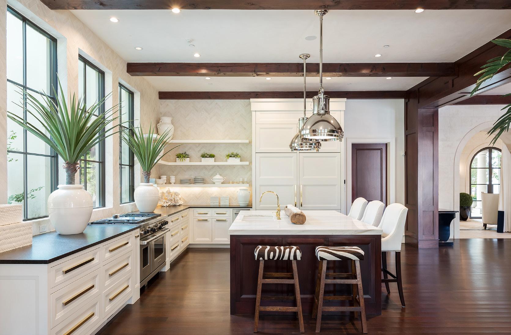 The Main Living areas are thoughtfully designed with striking Cordova limestone fireplaces, richly appointed bars and a seamless indoor-outdoor connection providing ultimate functionality for entertaining and everyday enjoyment. The elegant clean-lined kitchen features Calcutta Gold marble, plastered walls and ceiling, and is outfitted with top of the line Wolf, Sub Zero and Miele appliances. An adjacent catering kitchen houses double ovens, a microwave, second dishwasher and concealed storage. An inviting morning room with spectacular backyard views provides a comfortable serene gathering place any hour of the day.