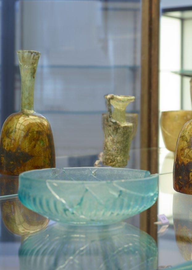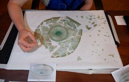 held. To save this collection, the restoration team consulted preexisting photographs and sketches of the objects to sort the hundreds of glass fragments by size, material, and color, before reconstructing the artifacts piece by piece, like a colossal puzzle.