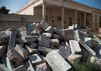 The restoration of the giant lamassu sculptures (winged and androcephalous lion gods, protectors of Assyrian palaces) in the Assyrian Hall of the Mosul Museum (Iraq) represents an entirely other challenge. The two sculptures were destroyed by powerful explosives in February 2015, and their fragments were later found strewn across the floor of the Hall. As part of the museum’s major rehabilitation program, Iraqi and French archaeologists have been measuring, documenting, and classifying each fragment in order to rebuild the original statues as well as possible.