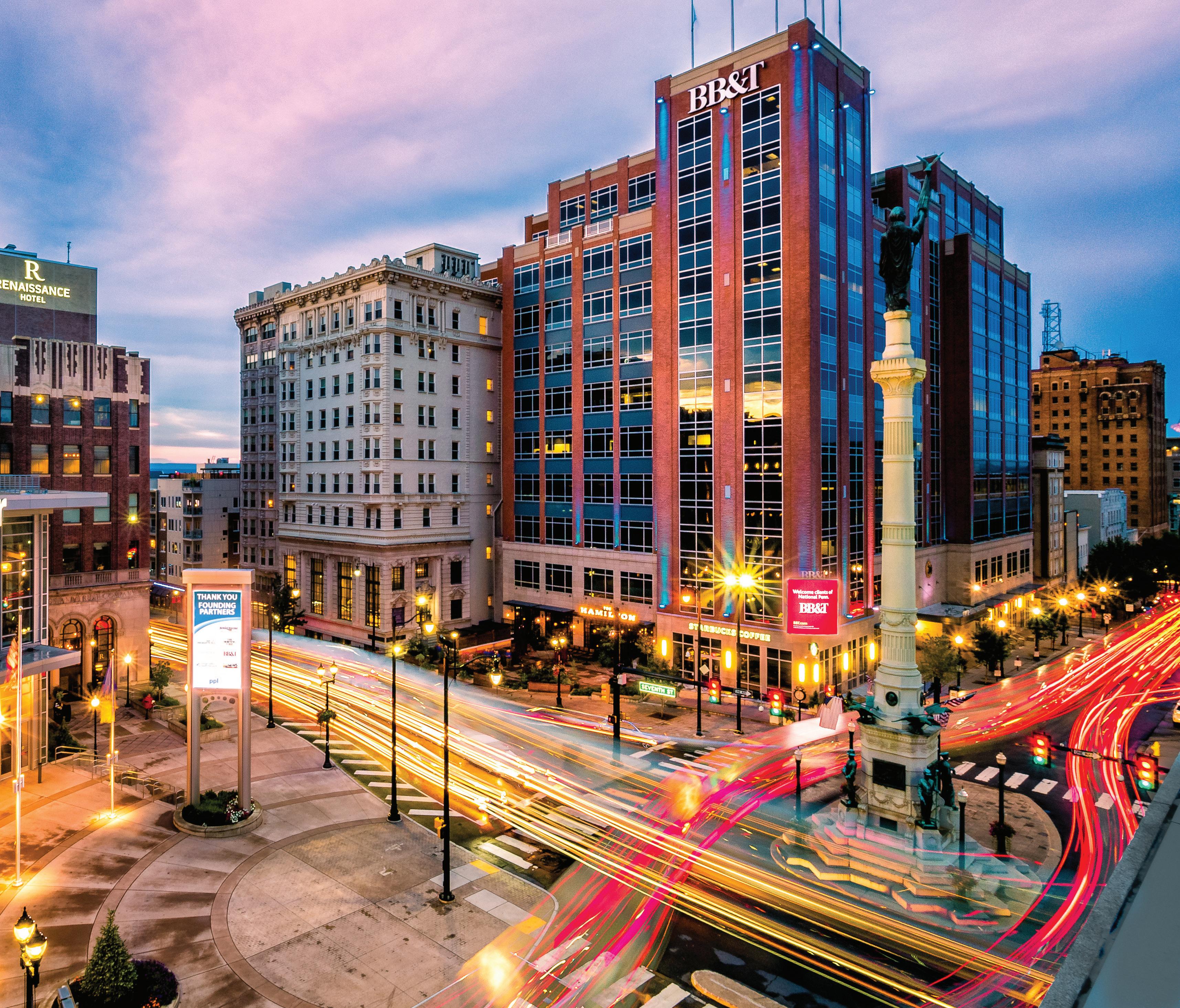The city has seen a resurgence with massive development in the walkable downtown area, bringing thousands of employees into new Class-A office space, welcoming residents to newly-constructed apartments, and ushering in new businesses to fill the needs of new clientele. The city stays true to its roots with the Allentown Fair & Fairgrounds Farmers Market, the expansive grounds of Lehigh Parkway, impressive history of the Liberty Bell Museum, and more.