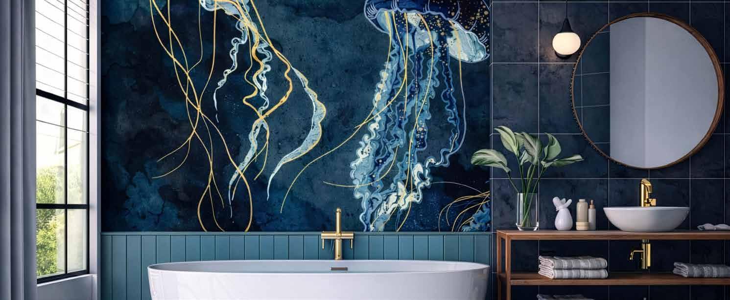 Deep Sea bringt die faszinierende Tiefe des Ozeans in jeden Raum. Mit ihren intensiven Blau- und Petrolnuancen wirkt sie mystisch, beruhigend und zugleich außergewöhnlich elegant. In Kombination mit metallischen Tönen entsteht ein luxuriöses Design. Deep Sea positioniert sich als trendbewusst, hochwertig und inspirierend.