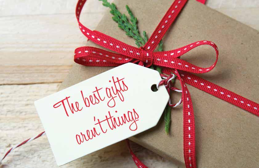 last holiday? I don’t. It’s not so much that we aren’t appreciative of gifts, it’s just that material things so often lack connection. This holiday, rather than giving “stuff,” I’m planning to give more experiential gifts — the types of gifts that create rich memories and bring more happiness. Experiences can get us and our gift recipients to try new things. Those are gifts worth giving. Our features, beginning on page 20, explain how and why experiential gifts should be on your shopping list this year.