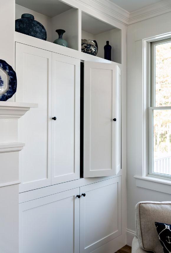 “Greek Revival is somewhat unusual for a new build,” says Joe Valle, “but they really loved the design and detailing of those emblematic homes.” The Ryans came supplied with plenty of ideas and images, and the Valle Group also had good references locally. “There are a cluster of Greek Revival homes in East Falmouth, as someone built a spate of them here about 60 or 70 years ago,” says Joe Valle. “So we had a good idea of what the Ryans were looking for.”