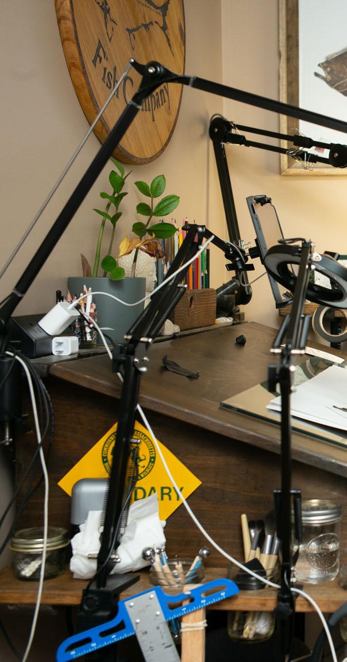 To that end, the ambiance is key. A worn futon and reading chair are joined by two leather chairs that belonged to the late grandfather of Murphy’s wife, Jen, where students often curl up to escape into their own worlds. A trunk in the center of the room holds a container of pens and pencils, for students who choose to write by hand, the old-fashioned way. A pellet stove offers warmth in the cooler months, while also contributing to the cozy vibe.