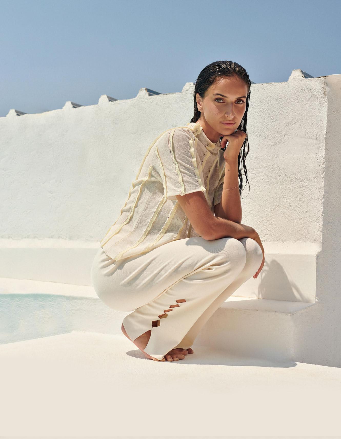 Cropped perforated sweater with ribbed details by Rino Pelle, styled by Lisa Sue, Story.