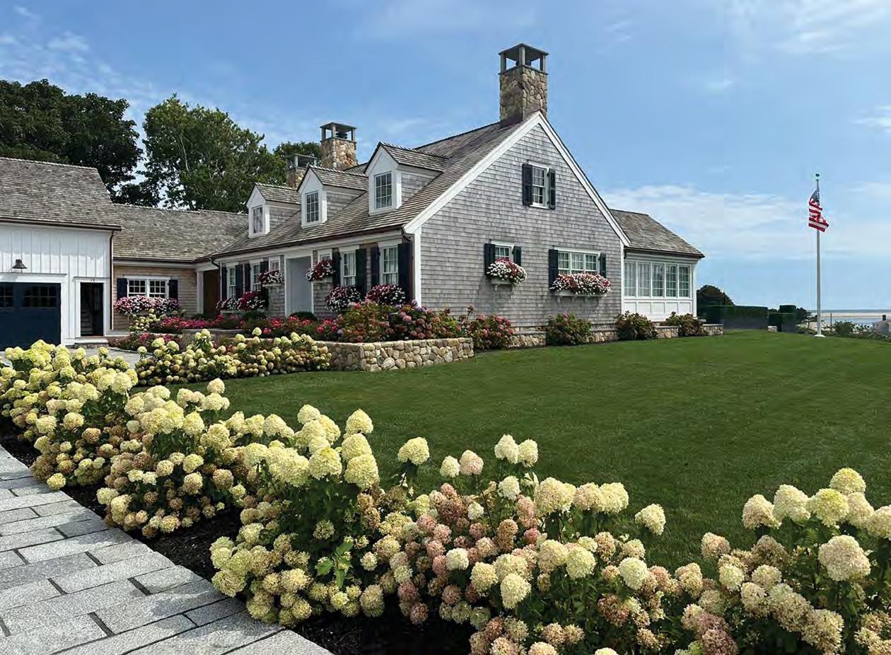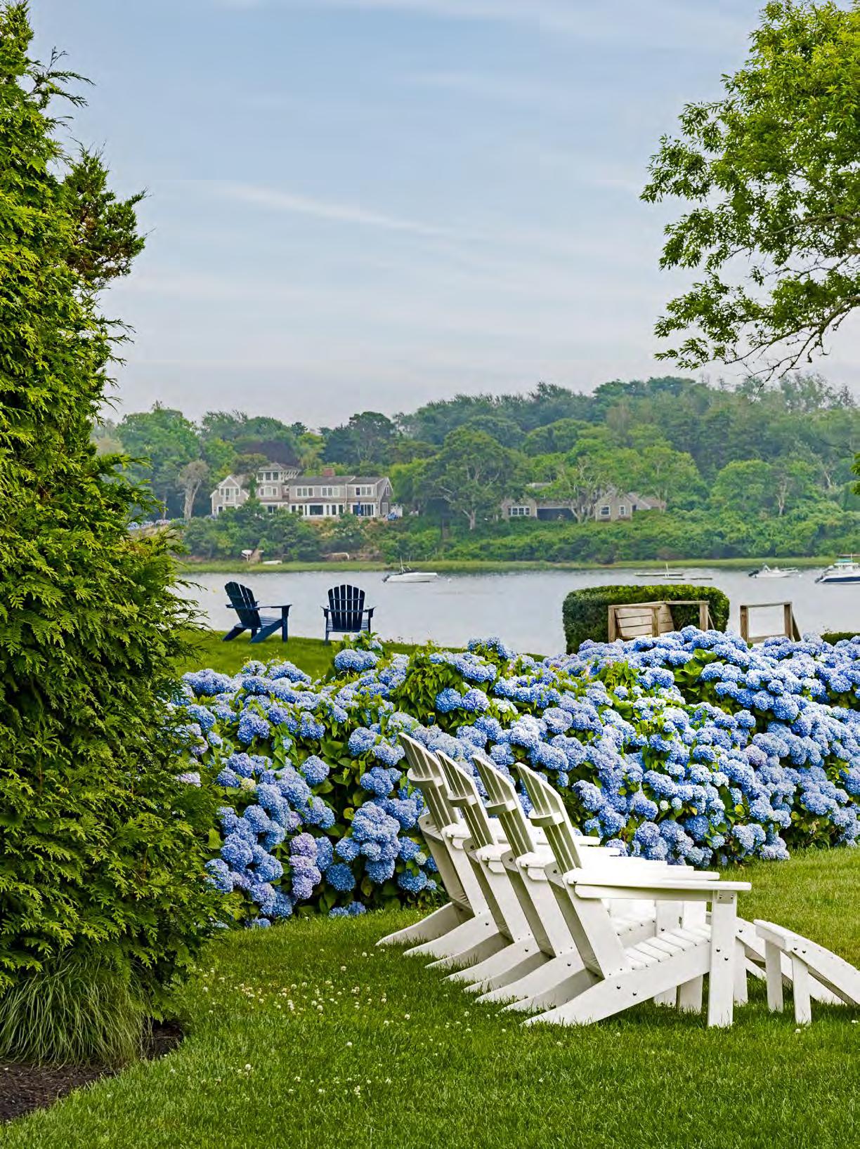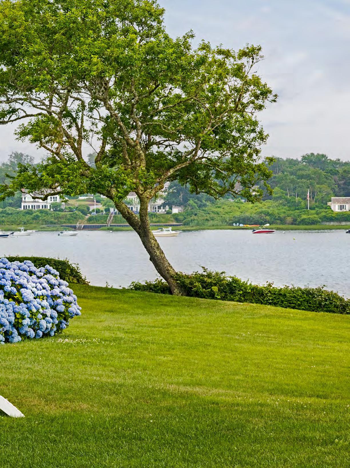 Bedworks Design remakes the garden on a property overlooking Oyster Pond into a warm, inviting and stately sanctuary surrounded by magnificent trees.