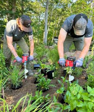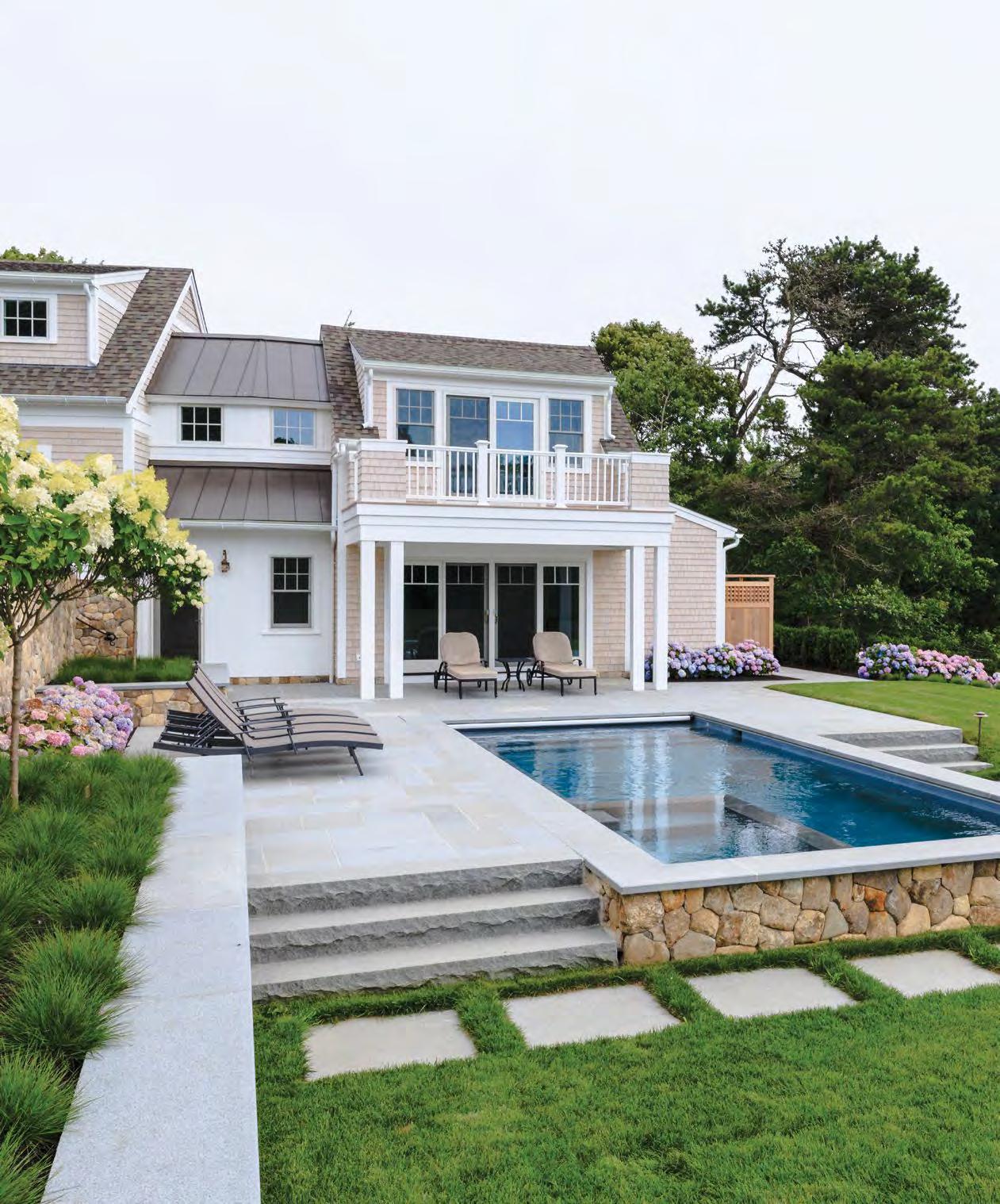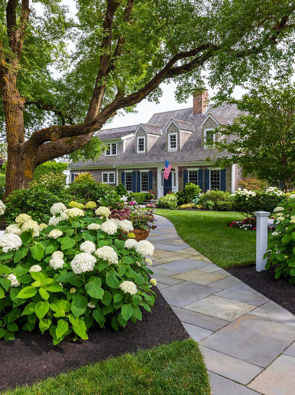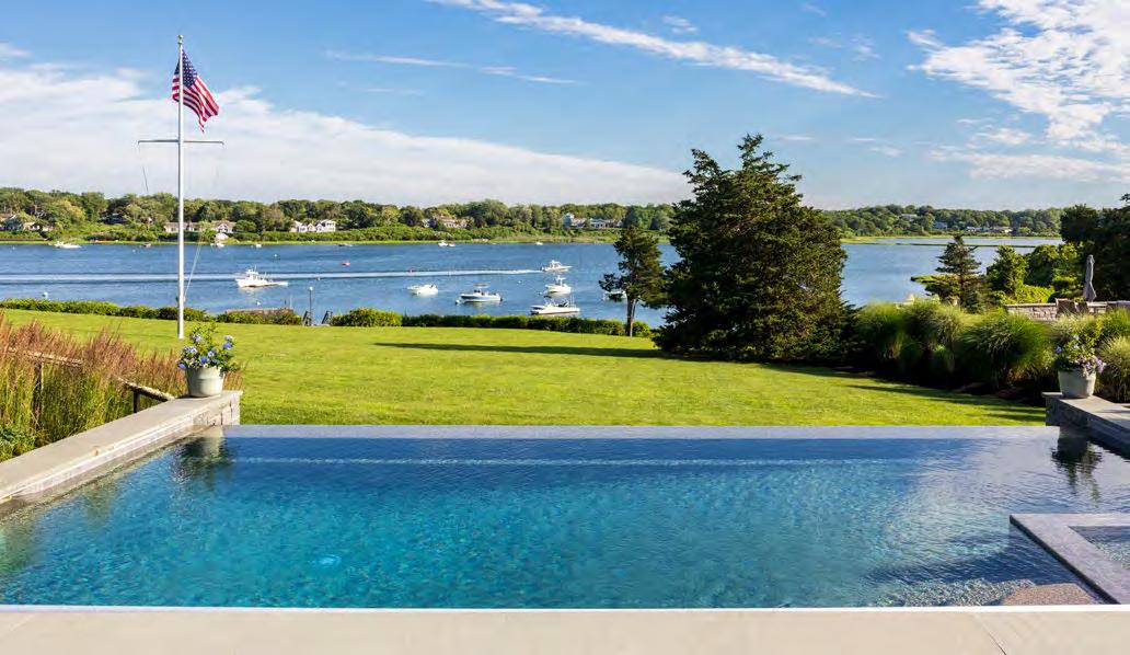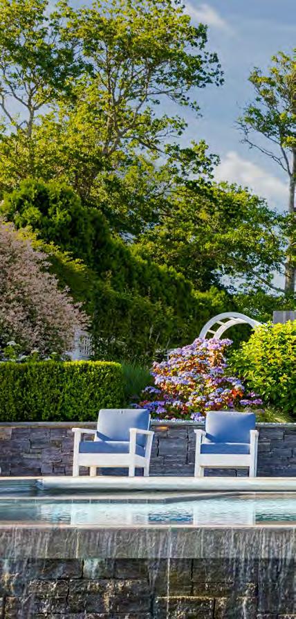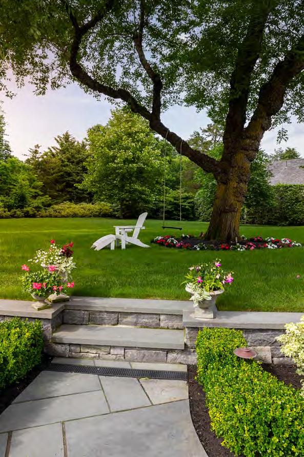 Bedworks Design remakes the garden on a property overlooking Oyster Pond into a warm, inviting and stately sanctuary surrounded by magnificent trees.