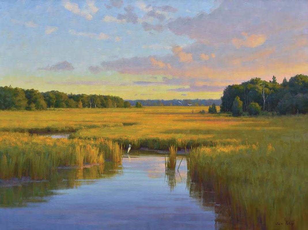 Chatham’s “Rockwellian” streetscapes provide a perfect backdrop for these wheels of yesteryear—such as the Packard Woody Station Wagon—along with other convertibles and sports cars that resonate with Cape Cod’s classic car culture. His artwork also appeals to those seeking nostalgic scenes of bygone days.