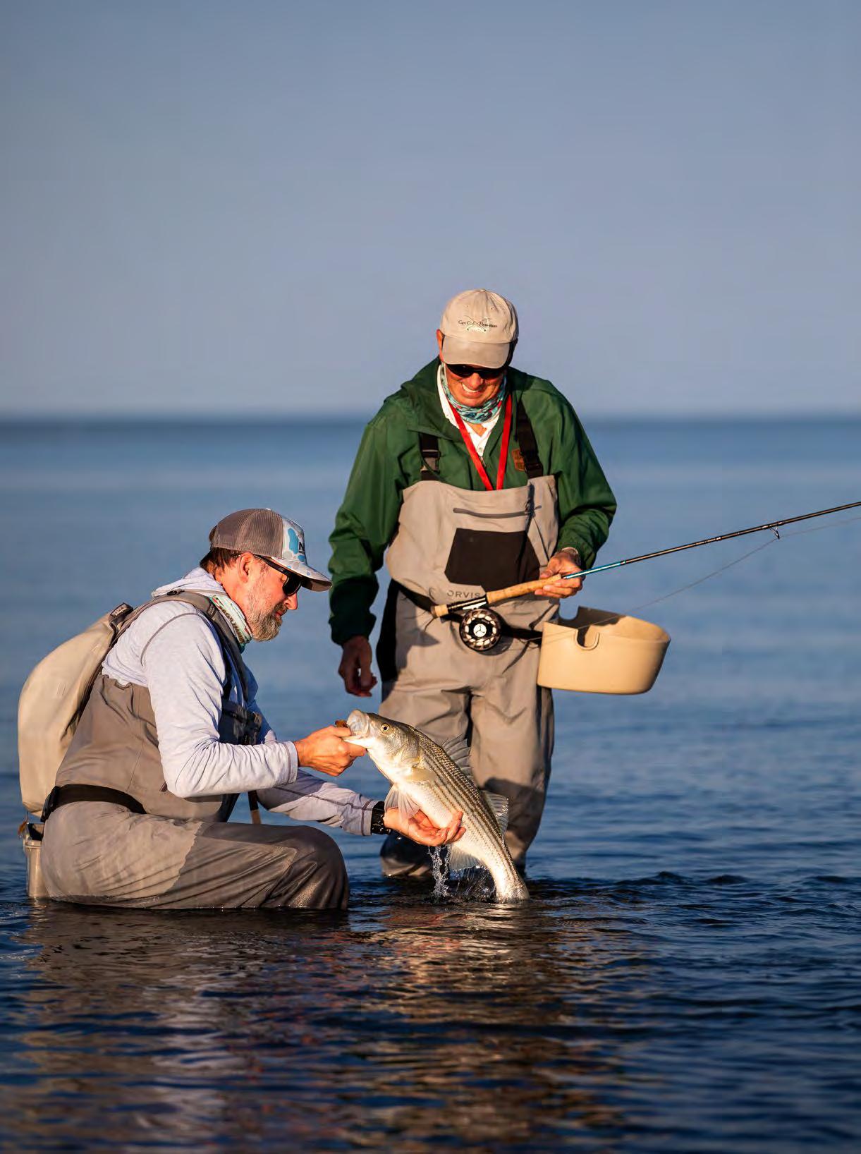 Fly-fishing guide Chris Kokorda keeps shallowwater angling traditions alive by taking clients where the striped bass are plentiful.