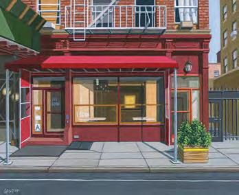 His artistic process begins with historical research on a particular scene, drawing from old newspapers, advertisements and magazines. One of his key artistic goals is storytelling—uncovering the history of a building or business and conveying it through his finished work.
