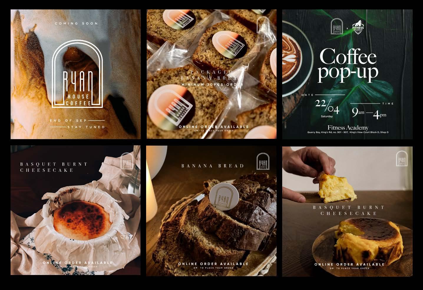 Art Direct and create brand identity for the online cafe and bakery in Hong Kong. Creation includes logo creation, brand strategies, photography, posters, menu design, package design, filming, video editing, and social media visuals.