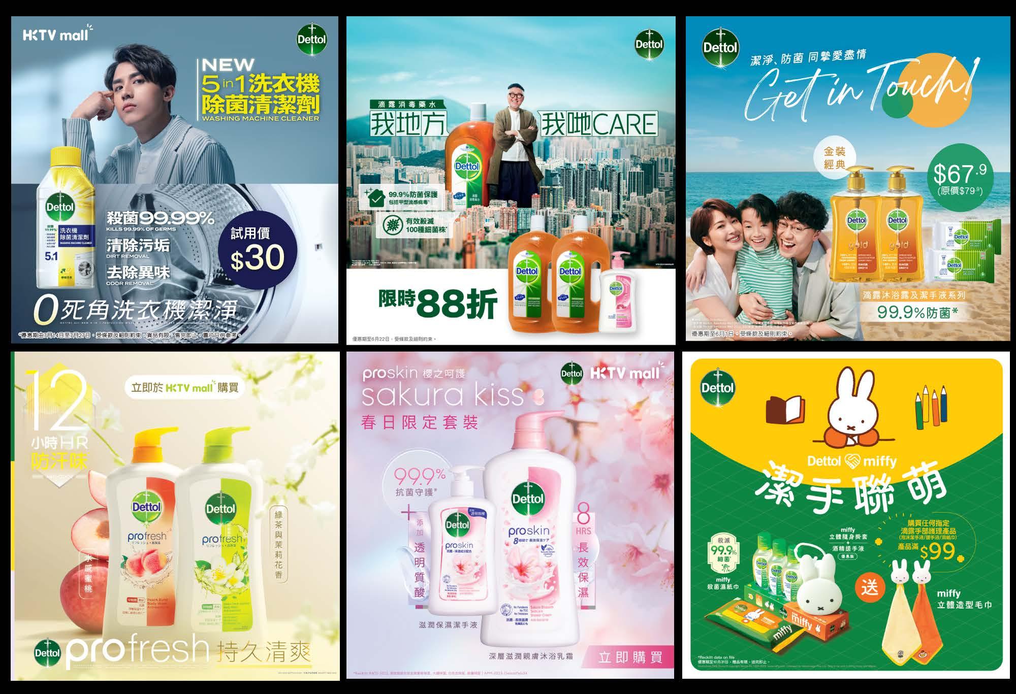 Create visual materials for Dettol including banners, Edm, Facebook post visuals, Visuals for Hktvmall, online store, Mannings and etc.