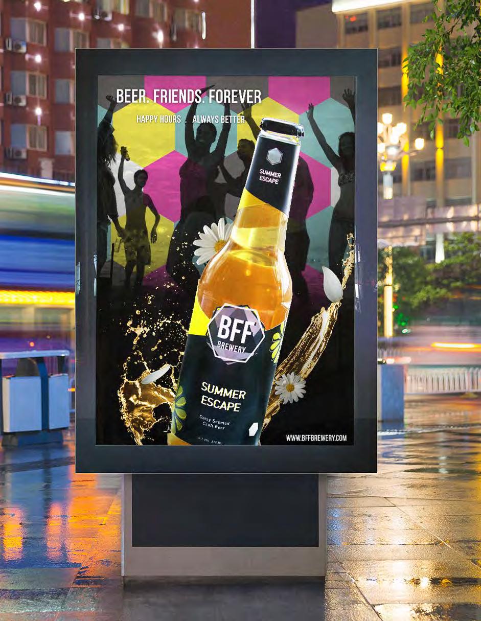 Art Direct for BFF Brewery, a beer company targeted for female audiences. Design materials include logo design, name concepts, package design, ads, photography and video editing for the company commerical.