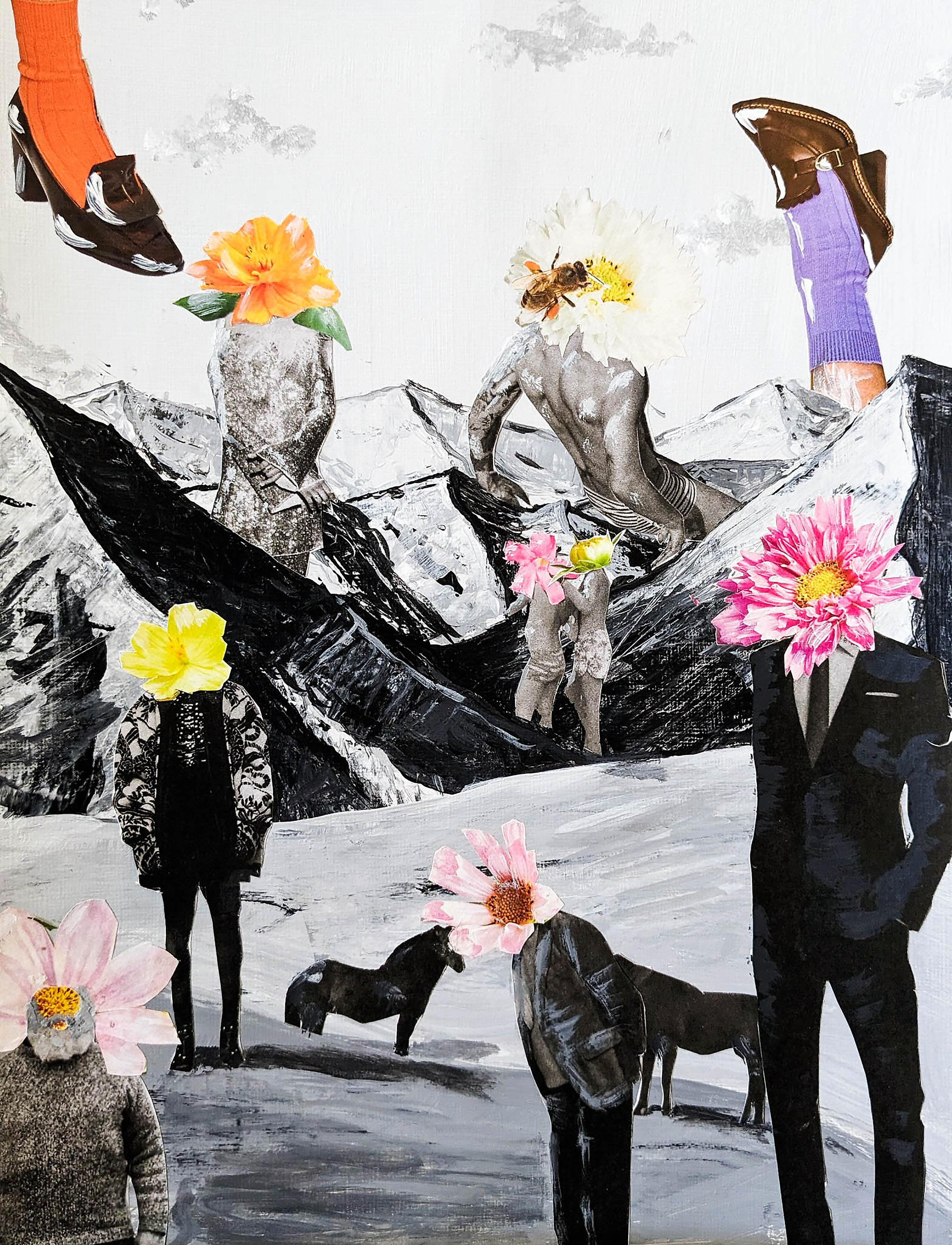 I walk into an empty corridor with a stairwell that leads to who knows where. It mustbetheadrenalineortheurgentneedto pee,butIbegintoclimbthestairs.Thereare sevenflights,andbythetimeImakeittothe top,Iamreadyforanothernap.Icomeacross anotherdoor,andhearingacommotionbehind it, Iwhipitopenandsee…dozensofdesks, maybehundreds.Behindeachdeskis aperson in a suit, intensely working on a computer. Everyone is so busy, they barely notice me, exceptforthisonetallguyinamanbun.